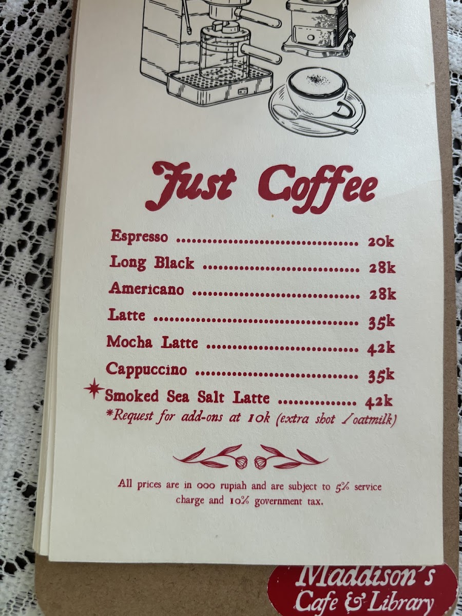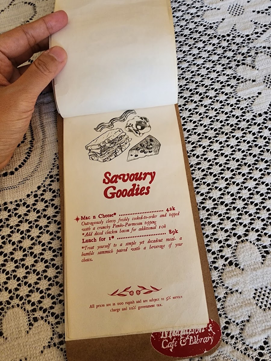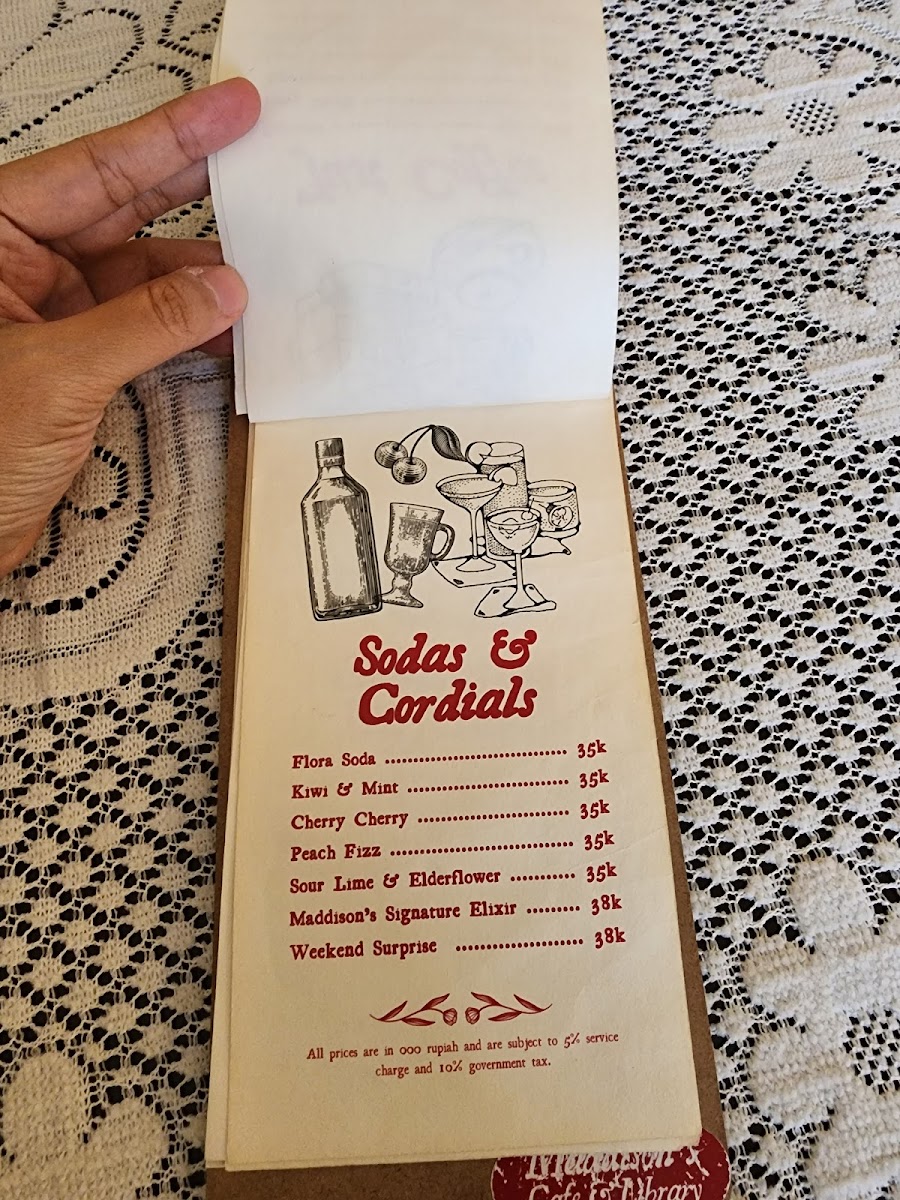 Maddison's Cafe & Library Menu